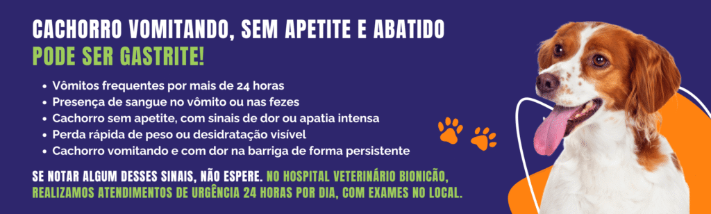 Se seu cachorro está vomitando, sem apetite, ou com sinais de dor na barriga, não hesite em buscar atendimento.