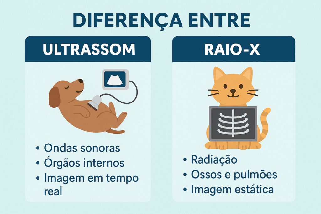 Qual é a diferença entre ultrassom e raio-X para pets?