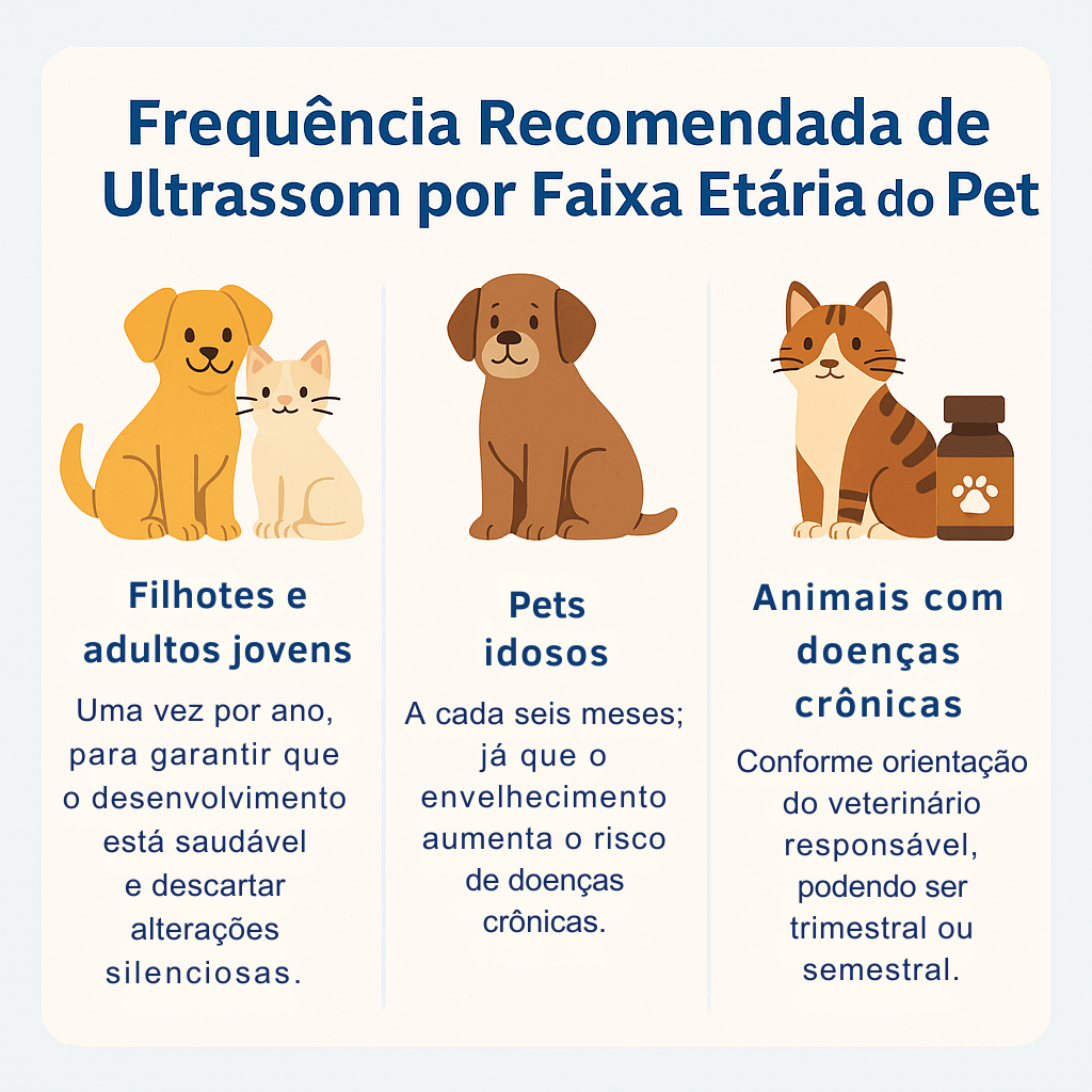 Mesmo sem sintomas, há situações em que o exame preventivo para pets é indicado. Filhotes, por exemplo, podem fazer o ultrassom uma vez por ano como parte do check-up veterinário.